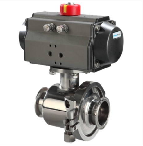 卫生级气动球阀的启闭件为一个球体。利用球体绕阀杆的轴线旋转,实现开启、关闭的目的。卫生级直通球阀在管道上主要用于切断介质的流通。